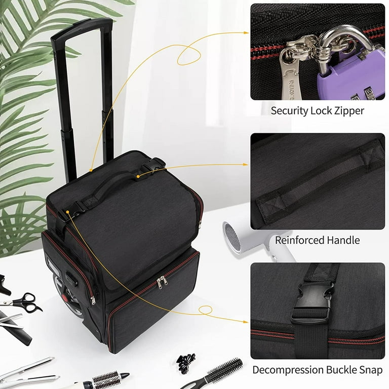 Large Makeup Train Case Cosmetic Makeup Case For Hairstylist Hairdresser Bag With Detachable Pouch Heat Insulation And Anti Scalding Full Layer For Hairdressing Tool Organizer Trolley With Wheels Walmart Com